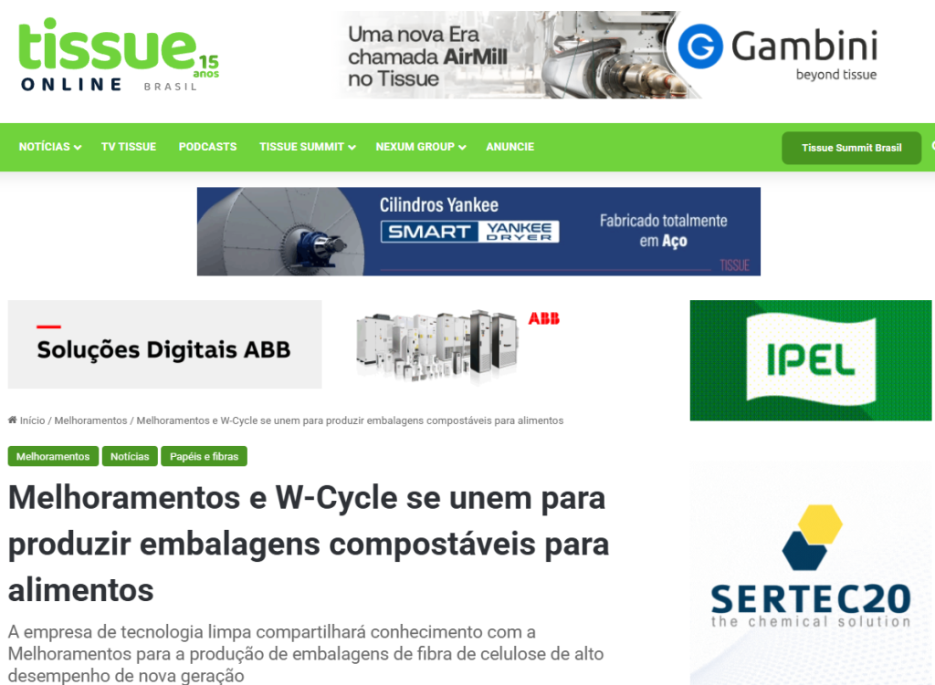 Link da matéria: https://tissueonline.com.br/melhoramentos-e-w-cycle-se-unem-para-produzir-embalagens-compostaveis-para-alimentos/