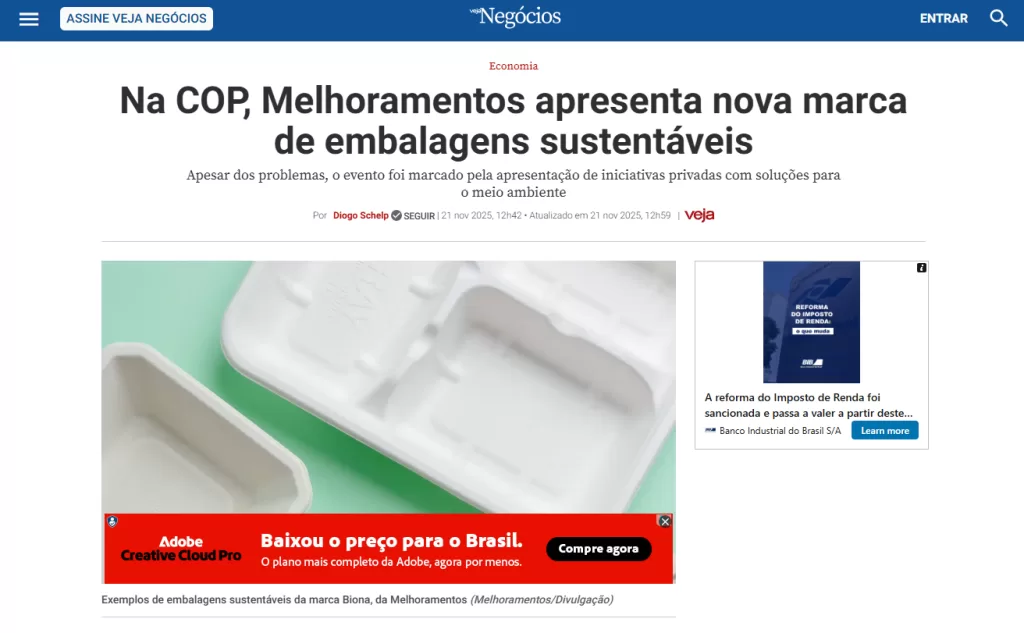 Link da matéria: https://veja.abril.com.br/economia/na-cop-melhoramentos-apresenta-nova-marca-de-embalagens-sustentaveis/
